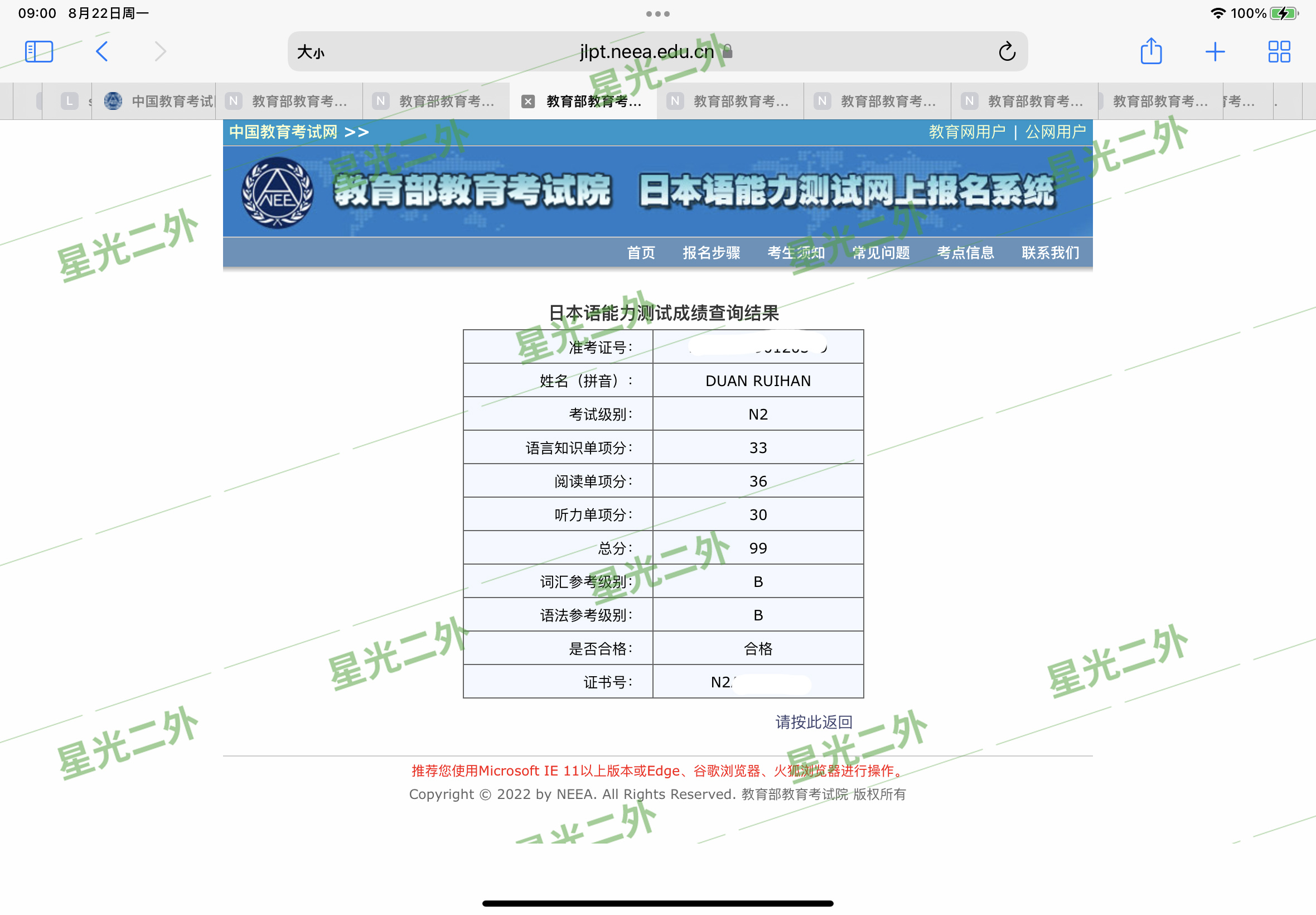 星光君催着老师们收集整理,虽然还不太全,还是迫不及待地发出来部分报考N1、N2和N3成绩,给即将报考今年12月份能力考的同学们来一波信心!
